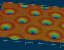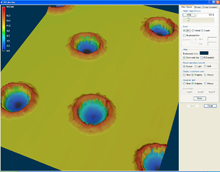 | 激光微火山口加工效果圖 | 激光微火山口加工效果圖 | 微火山口加工效果圖,深度5um | 鐳射效果測(cè)量圖 |